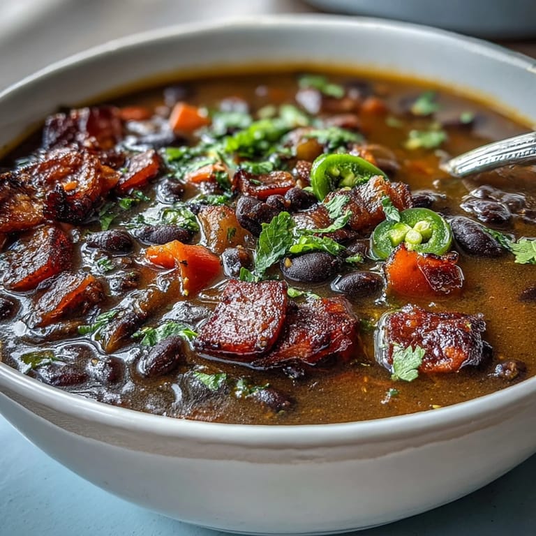 Save to Pinterest There's something about a steaming bowl of black bean soup that cuts through winter like nothing else—I discovered this particular recipe on a morning when the kitchen felt colder than the rest of the house, and I needed something that would warm both my hands and my mood. The combination of smoky ham and jalapeños came together almost by accident when I was rummaging through the fridge one Saturday, determined not to waste the half-can of black beans sitting in the back. What started as improvisation became something I've made dozens of times since, each batch tasting like comfort tastes.