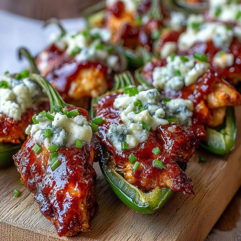 Save to Pinterest The smell hit me before I even opened the oven door—tangy buffalo sauce mingling with roasted jalapeños and that unmistakable sharpness of blue cheese. My brother had challenged me to make something that could survive his spice tolerance, and I wasn't about to back down. These poppers were born out of that ridiculous kitchen standoff, and they've been my secret weapon at every gathering since. I still remember his face after the first bite, equal parts impressed and defeated. Sometimes the best recipes come from a little sibling rivalry.