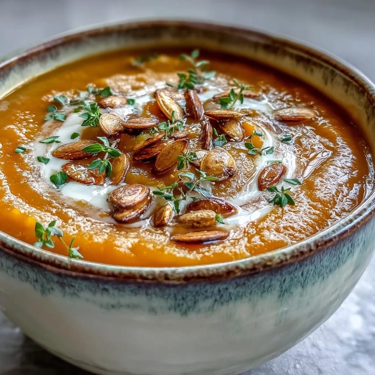 - Taste and add more salt or pepper if needed, then ladle into warm bowls. A pretty swirl of cream and some toasted pumpkin seeds or fresh thyme leaves on top makes it feel special.