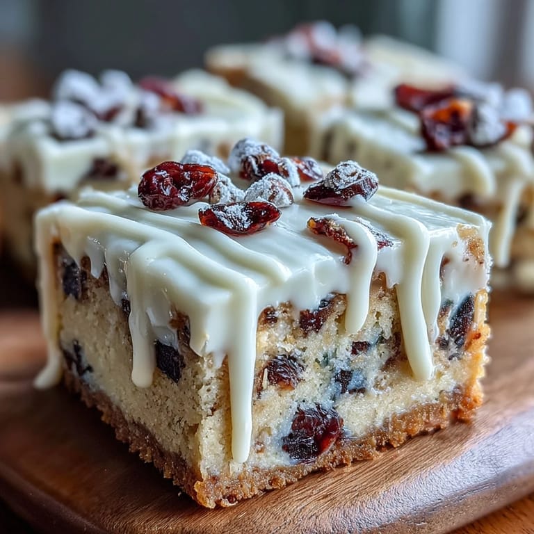If cranberries arent your thing, dried cherries or chopped apricots work beautifully and give the bars a different kind of sweetness. A quarter teaspoon of ground ginger in the batter adds a subtle warmth that makes them taste even more festive. For a less sweet version, cut the powdered sugar in the frosting to three quarters of a cup and add an extra teaspoon of orange juice.
