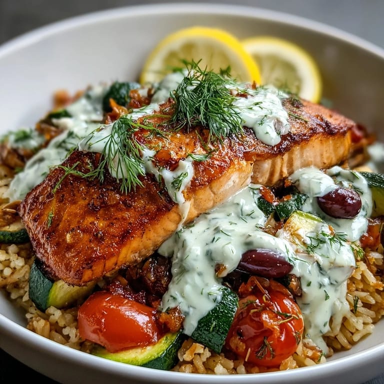 Save to Pinterest My kitchen smelled like a sunny Mediterranean afternoon the first time I assembled this bowl, all lemon and oregano hanging in the air while the salmon skin crisped up in the pan. I'd been craving something that felt both indulgent and light, and this combination just clicked—crispy rice providing that unexpected textural contrast against tender fish and bright vegetables. The beauty of it is how forgiving it is; you can prep everything while the rice gets its golden crust, then come together in minutes. What started as an experiment has become my go-to when I want to impress without stress.