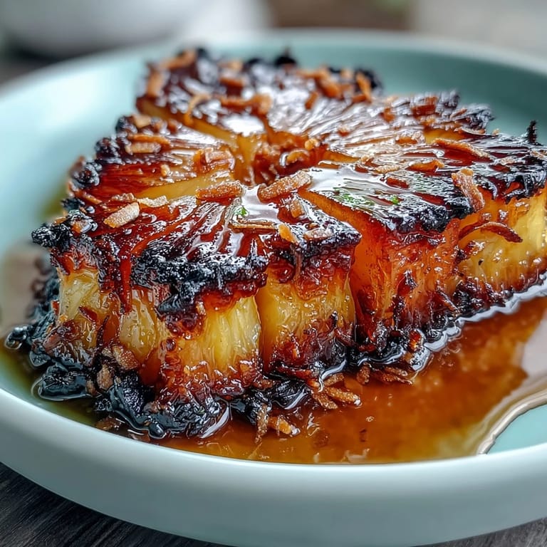- Arrange the warm roasted pineapple on a platter, scatter that toasted coconut over top, and serve immediately. The contrast between warm fruit and the crunch of coconut is part of what makes this work.