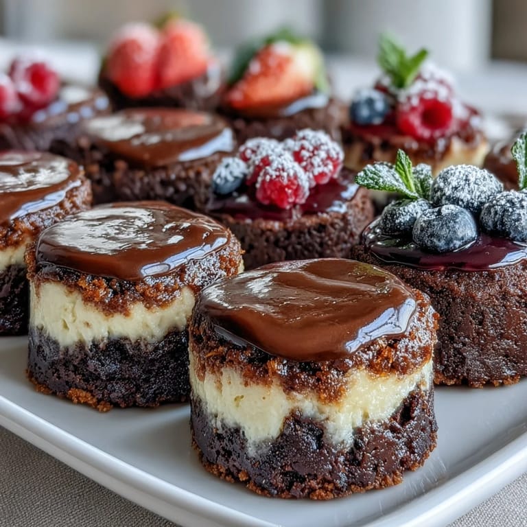 Save to Pinterest My neighbor knocked on my door with a housewarming invitation, and I immediately panicked—what do you bring to celebrate someone's new kitchen without showing up empty-handed? That's when I decided to create an entire dessert bar, three different mini treats that could live side by side on a platter and let everyone graze without commitment. The brownies would be fudgy and dark, the lemon cheesecakes bright and tangy, and the fruit tartlets would taste like summer no matter the season. It felt ambitious, but standing in my own kitchen arranging them hours later, I realized this was exactly the kind of gift that says: I spent time thinking about making you happy.