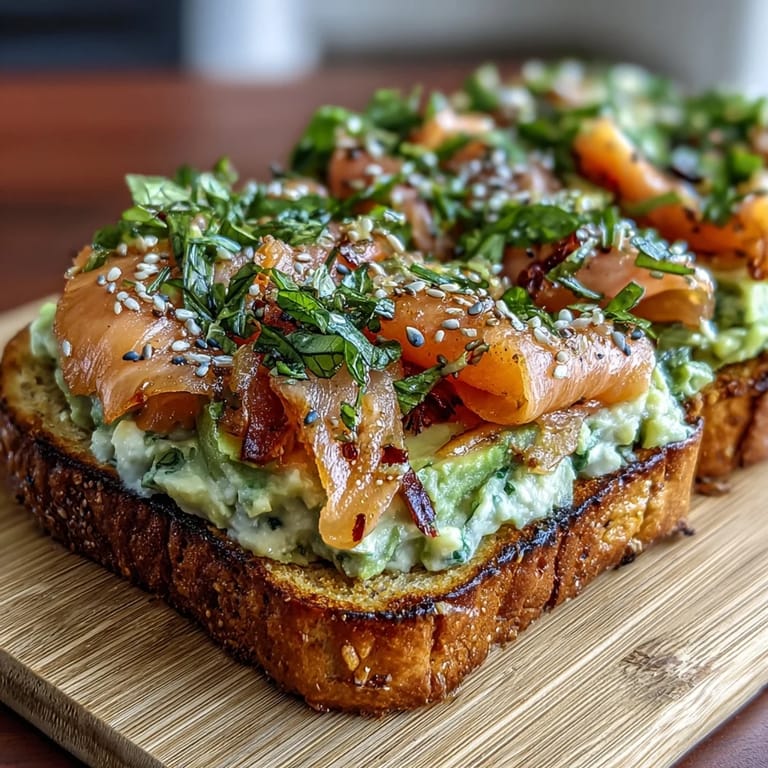 Smoked salmon transforms this from breakfast into something that feels like you're at a brunch restaurant, and there's real chemistry happening between the buttery bread, creamy avocado, and salty fish. The umami depth of the salmon makes the whole dish taste more sophisticated and complete, plus the protein content keeps you satisfied through the morning. I discovered this almost by accident when a friend brought expensive smoked salmon to share, and the upgrade felt like finding out there was a secret menu item.