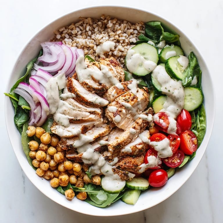 Save to Pinterest Last Tuesday I found myself staring at a jar of tahini in my pantry, wondering how to turn it into dinner. My sister had mentioned this bowl idea weeks ago, and something about the combination of roasted chicken and nutty sesame sauce just clicked. I roasted the chicken while the farro bubbled away, filling the kitchen with cumin and citrus. The first bite made me realize I had been missing this flavor profile my entire life.