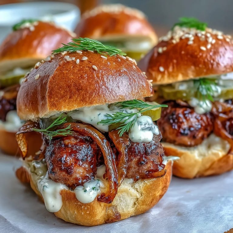 Save to Pinterest My neighbor knocked on my door during halftime carrying a tray of something that smelled like a Wisconsin tailgate and a Berlin street cart had a baby. These sliders—mini brat patties drowning in beer cheese, crowned with sweet onions and tangy pickles—disappeared before the third quarter even started. I made them myself the next Sunday and haven't looked back since. They're messy, indulgent, and impossible to eat just one. Perfect for when you want everyone huddled around the kitchen island instead of the TV.