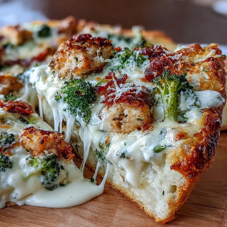 Save to Pinterest My roommate swore by this pizza during a particularly stressful work week, insisting it was the only thing that would calm the chaos of our tiny apartment kitchen. What started as skepticism turned into me watching the garlic-Parmesan sauce bubble away on the stovetop, filling everything with this incredible buttery aroma that made me understand why she was so convinced. The first bite was revelatory—creamy without being heavy, with the broccoli adding this bright vegetal contrast I hadn't expected to work so well on pizza.