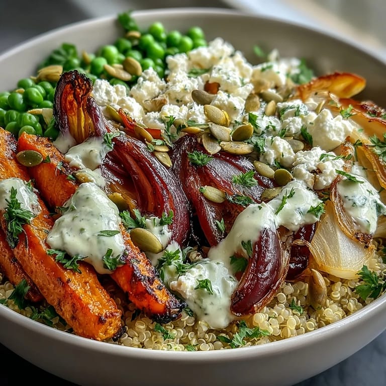 The beauty of this bowl is how forgiving it is, the way you can adjust nearly every element based on what's in your kitchen or what you're craving that day. The roasted vegetables are the backbone, providing sweetness and texture that makes everything else more interesting. Even when I've substituted butternut squash for carrots or swapped the peas for roasted chickpeas, the formula stays solid because the warm quinoa and tangy dressing create a framework that supports endless variations.